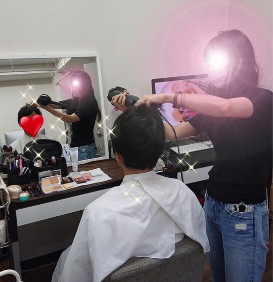ヘアメイク中