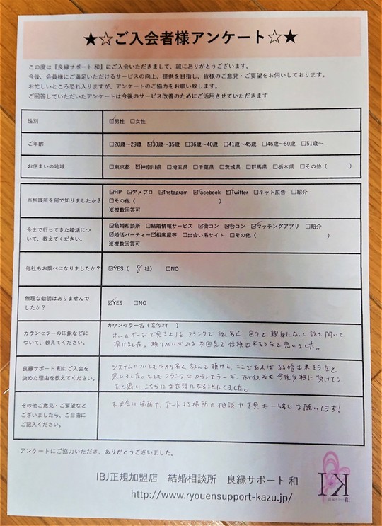 ご入会者様アンケート 神奈川県 30代男性