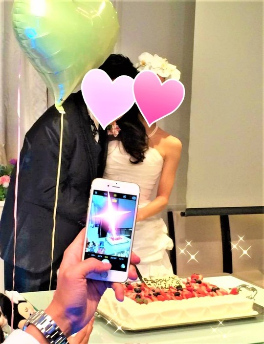 シャンパン片手に入場