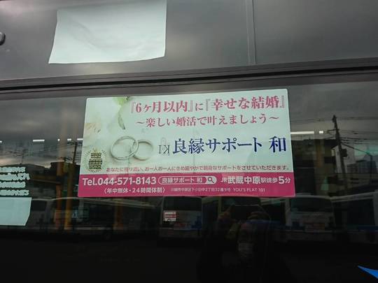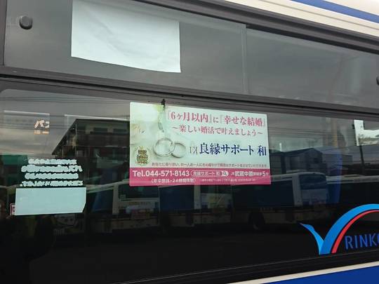 川崎市内のバスに『良縁サポート 和』の広告が掲載されております。③