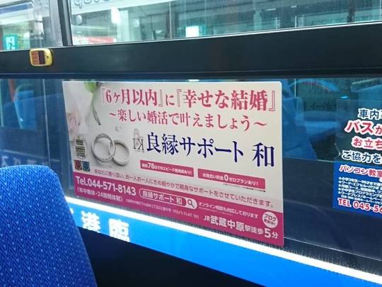 川崎市内のバスに『良縁サポート 和』の広告が掲載されております。⑤