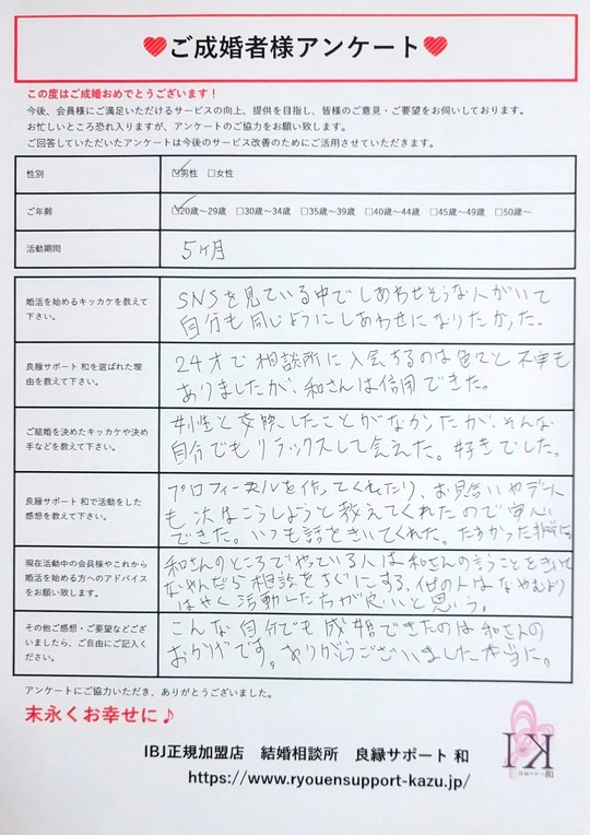 こんな自分でも成婚できたのは和さんのおかげです。