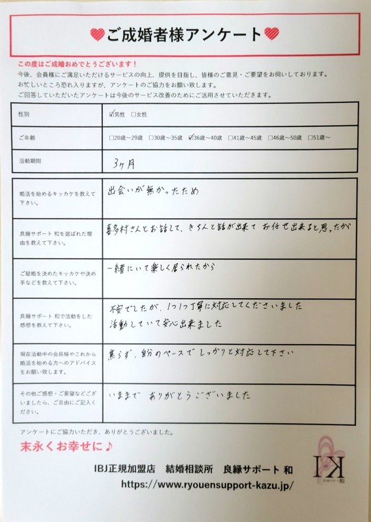 ※許可を得て載せております。 性別:男性 ご年齢:36歳~40歳 活動期間:3ヶ月