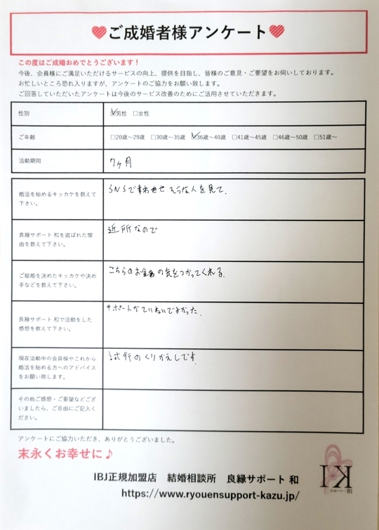 ※許可を得て載せております。 性別:男性 ご年齢:36歳~40歳 活動期間:7ヶ月