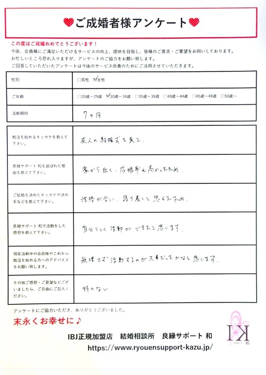 ※許可を得て載せております。 性別:女性 ご年齢:30歳~34歳 活動期間:7ヶ月