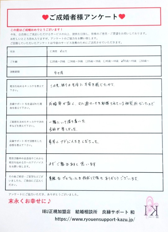 成婚率が高く、マル適マークを取得されている相談所だったため。