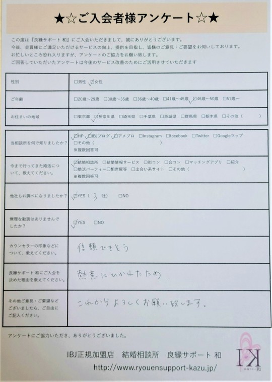 ※許可を得て載せております。 性別:女性 ご年齢:46歳~50歳 お住まいの地域:神奈川県