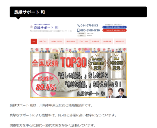『良縁サポート 和』は【成婚率89.4%】の結婚相談所として高く評価されております。