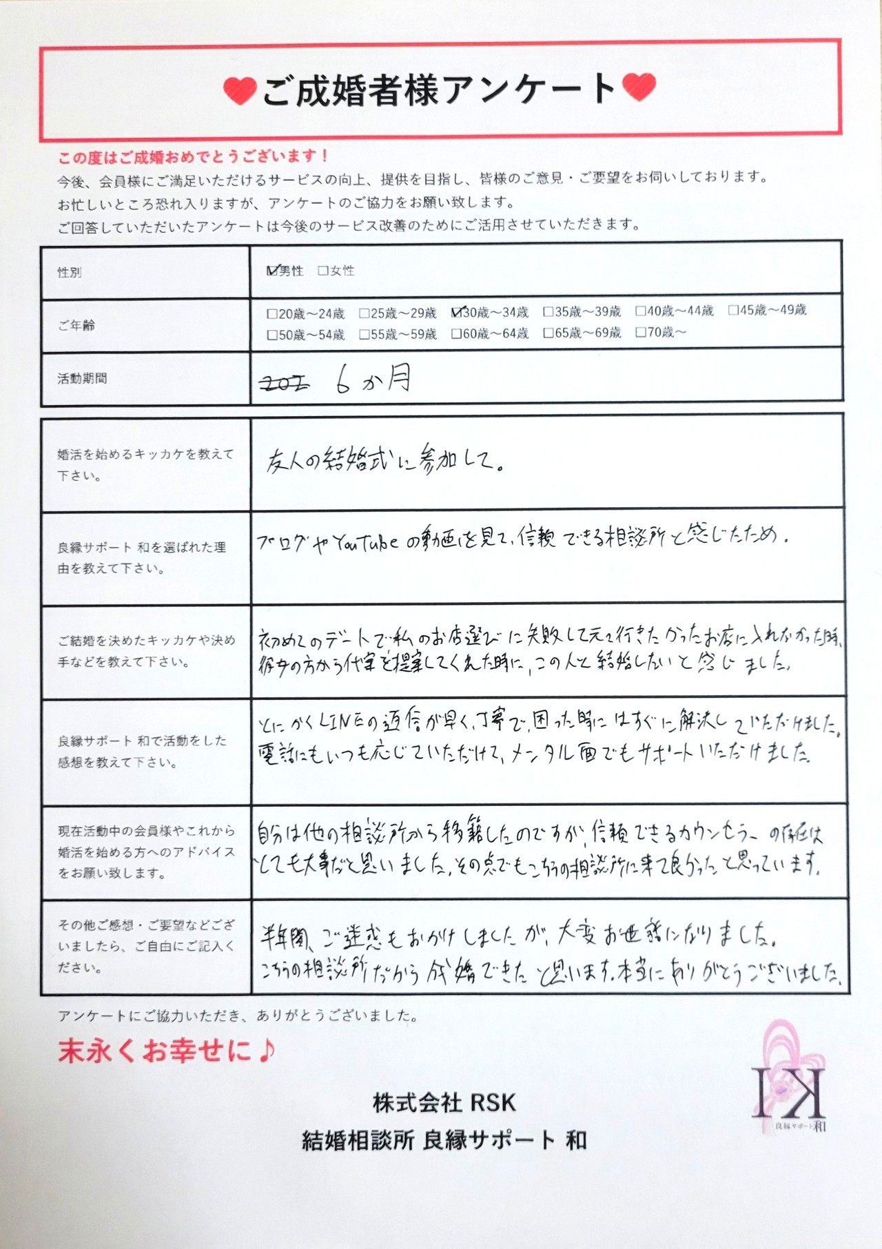 ・その点でもこちらの相談所に来て良かったと思っています。